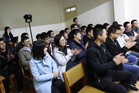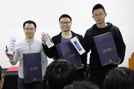 本次活动的第一个环节是向研三毕业同学赠送毕业礼物。本次由博士生袁伟和钱烨强代表实验室提前为研三毕业生挑选了毕业礼物。实验室分别为毕业生挑选了印有上海交大Logo的保温杯,寓意情谊“一辈子”。同时为毕业生挑选了一只精美并印有交大庙门图案的名片盒,祝愿他们在职场能继续腾飞。